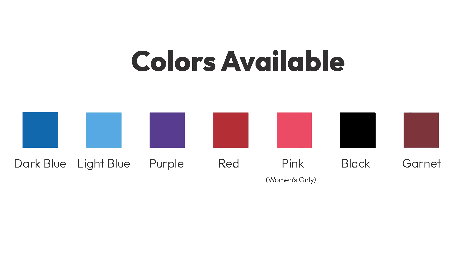 Samples of all colors and sizes are available to try on and see at Brushy Creek Cafe. (Colors are also below.) If you need to pay with cash, or check, please call the Brushy Creek Office at 864-244-5075.